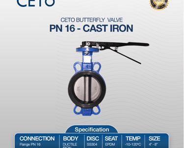 CETO WAFER TYPE BUTTERFLY VALVE DUCTILE IRON, SEAT EPDM, DISC SS304, SIZE 4-8 Inch